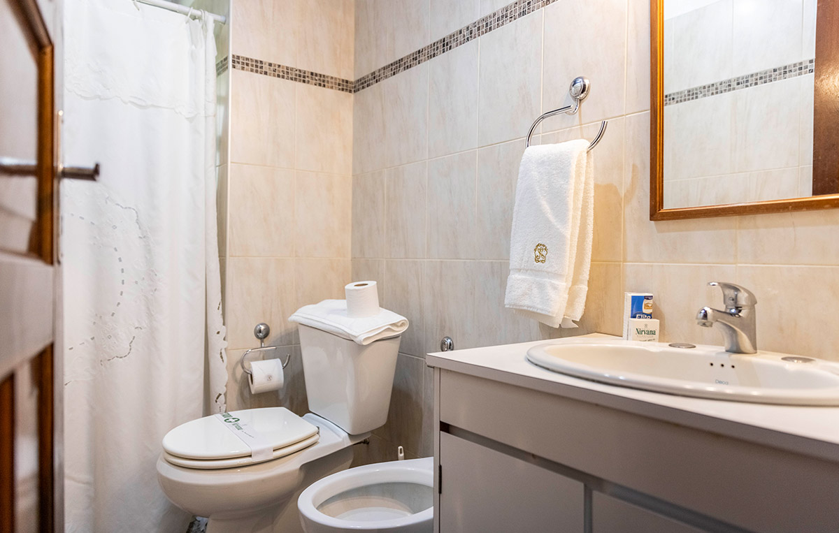 Dos habitaciones comunicadas entre sí, con un sólo baño.